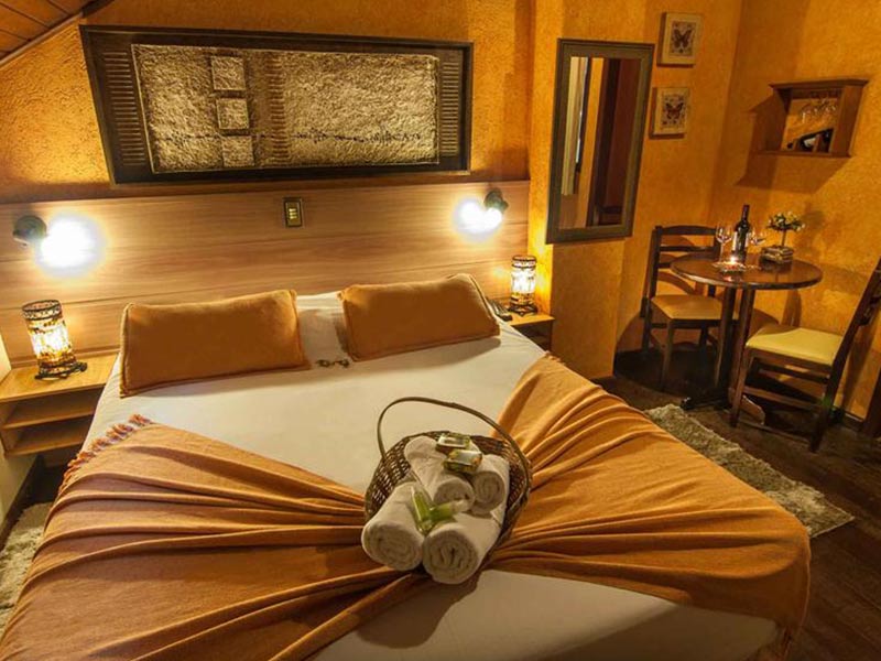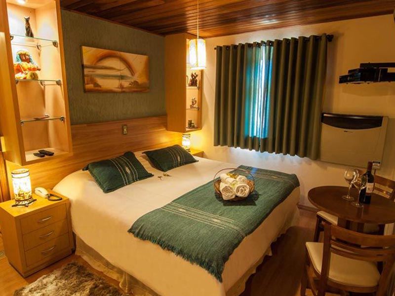 Amplitude e esmerada decoração são os pontos fortes desta acomodação, especialmente criada para atender aos mais exigentes gostos, elaborado para os casais apaixonados, nosso Apartamento Premium possui arquitetura e decoração projetadas com esmero pelo projetista Marcos Almeida, atento a todos os detalhes para proporcionar uma lua de mel inesquecível aos que se amam.