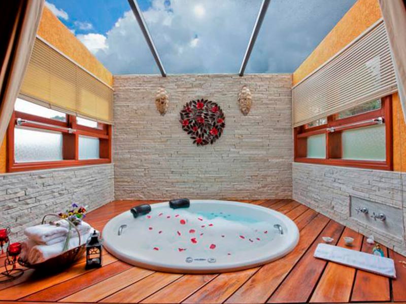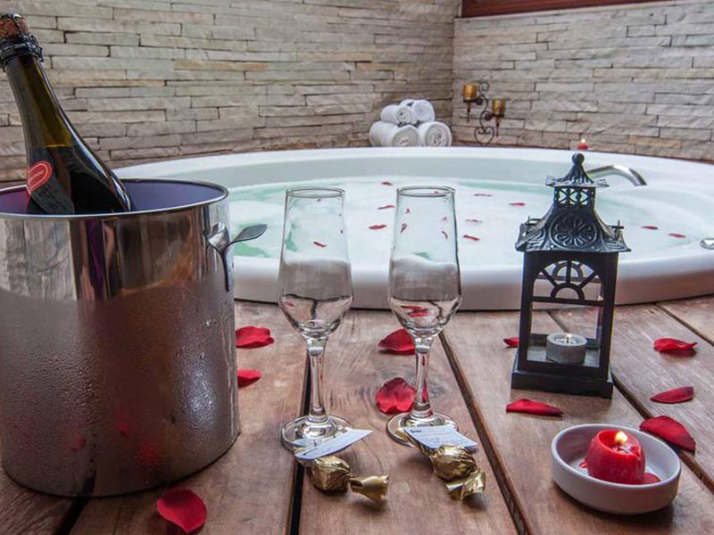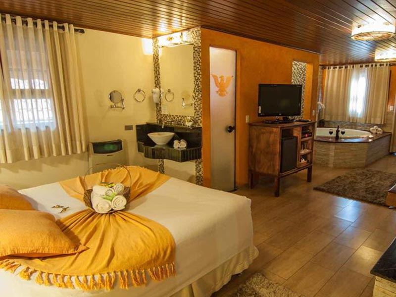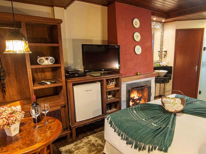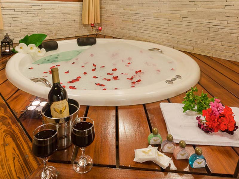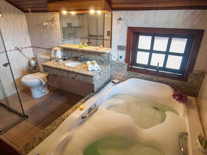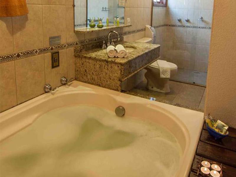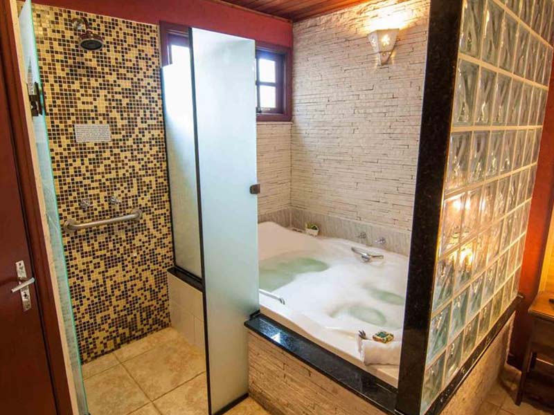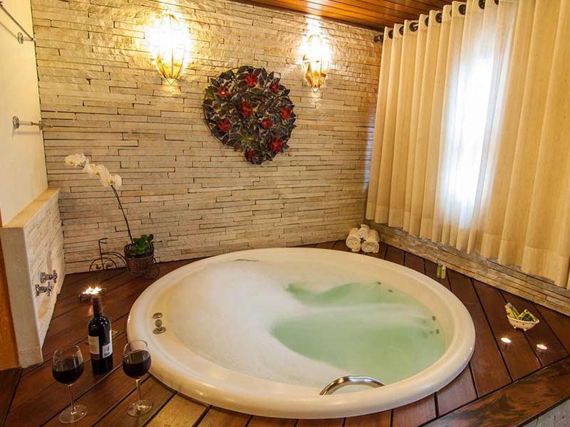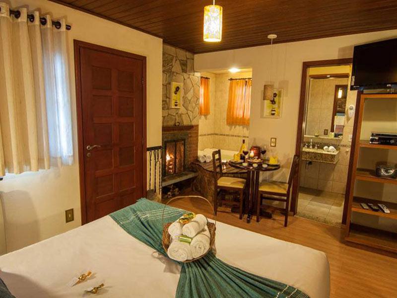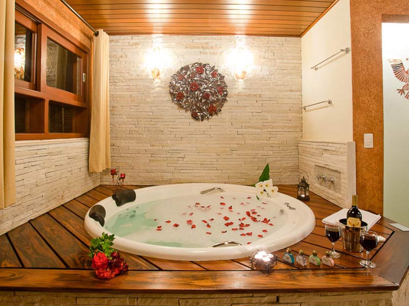 Apartamentos completos com hidromassagem para um romântico banho à luz de velas. Juntamente com nossos chalés de madeira com hidromassagem, opção mais econômica para quem procura uma acomodação com hidromassagem.