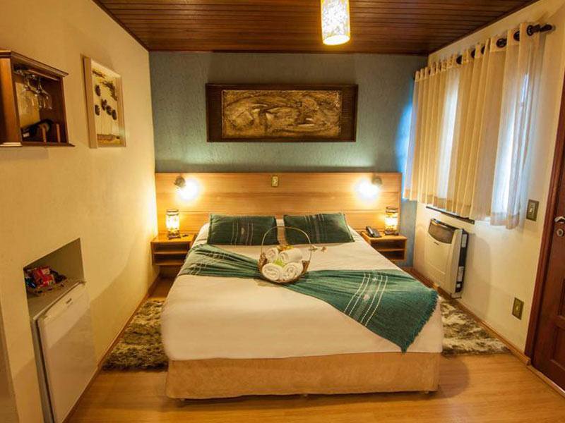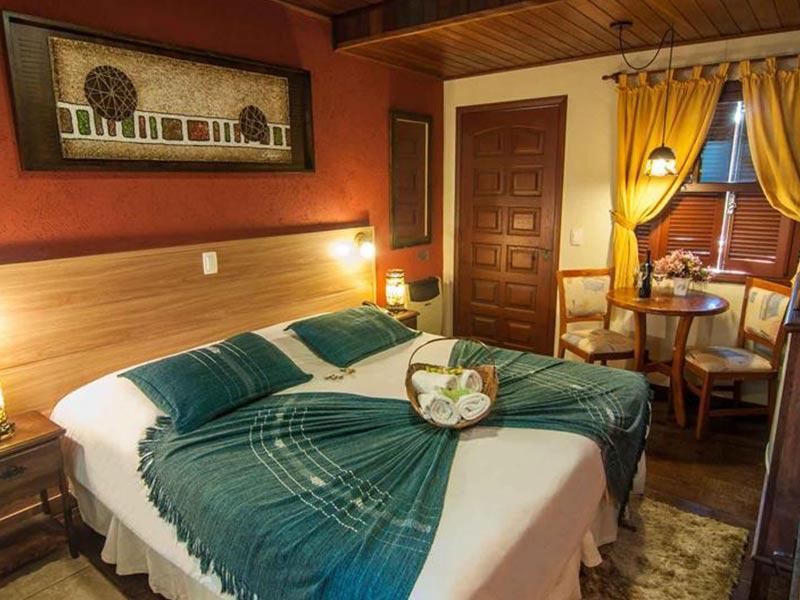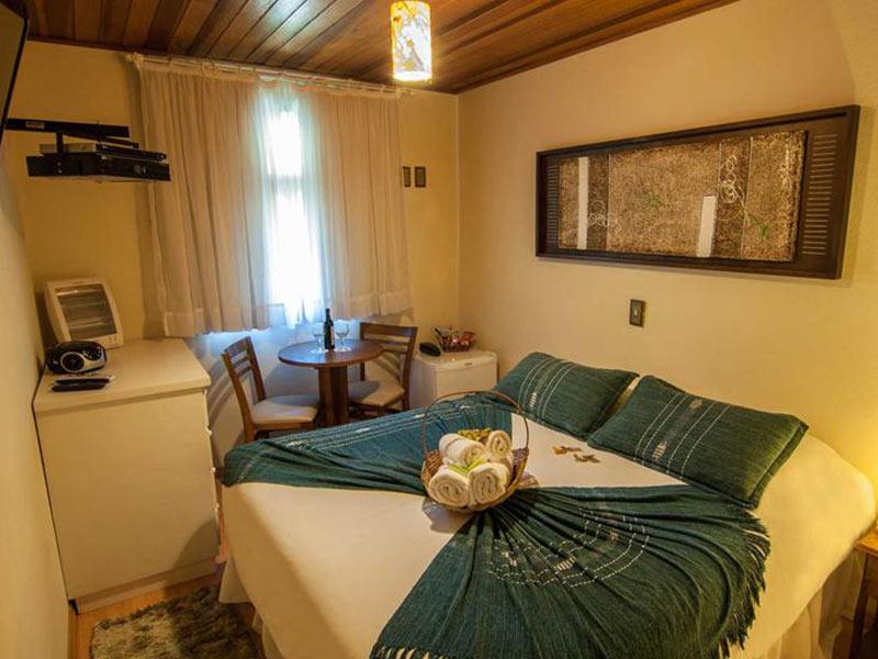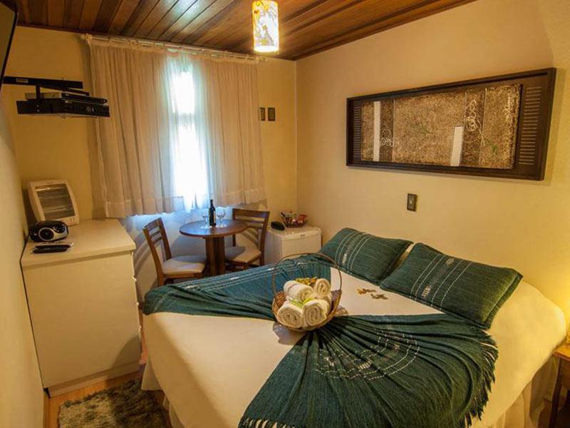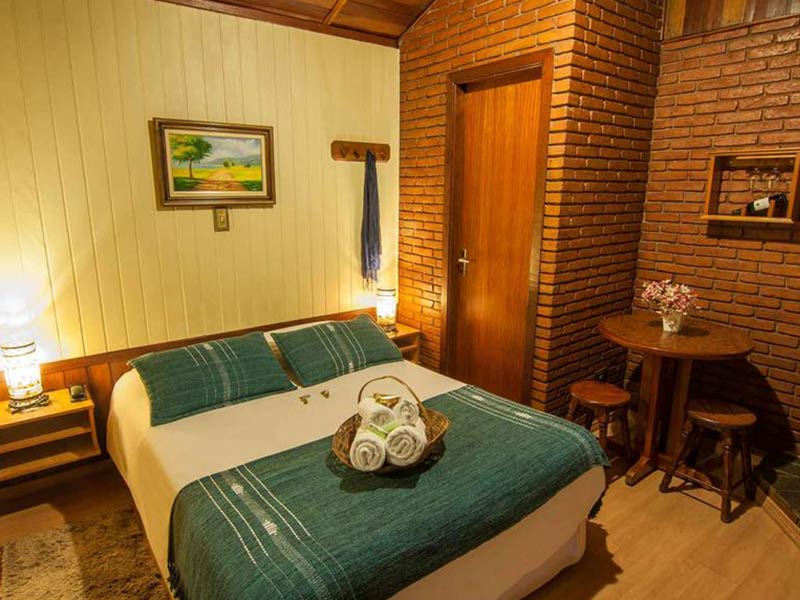 Opção para quem quer se hospedar aproveitando tudo que a pousada oferece com mais economia. Acomoda 2 pessoas. Não possui lareira nem calefação, mas um aquecedor elétrico fica à disposição para uso sem cobrança adicional.