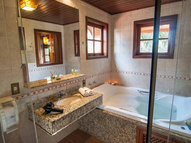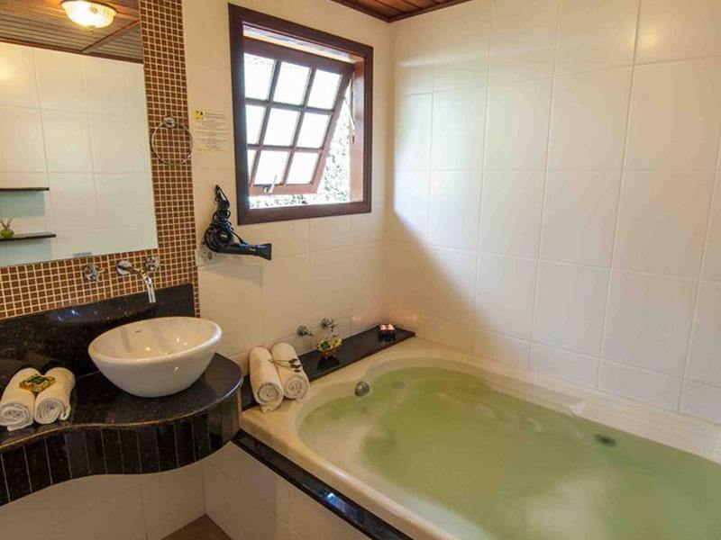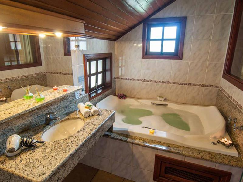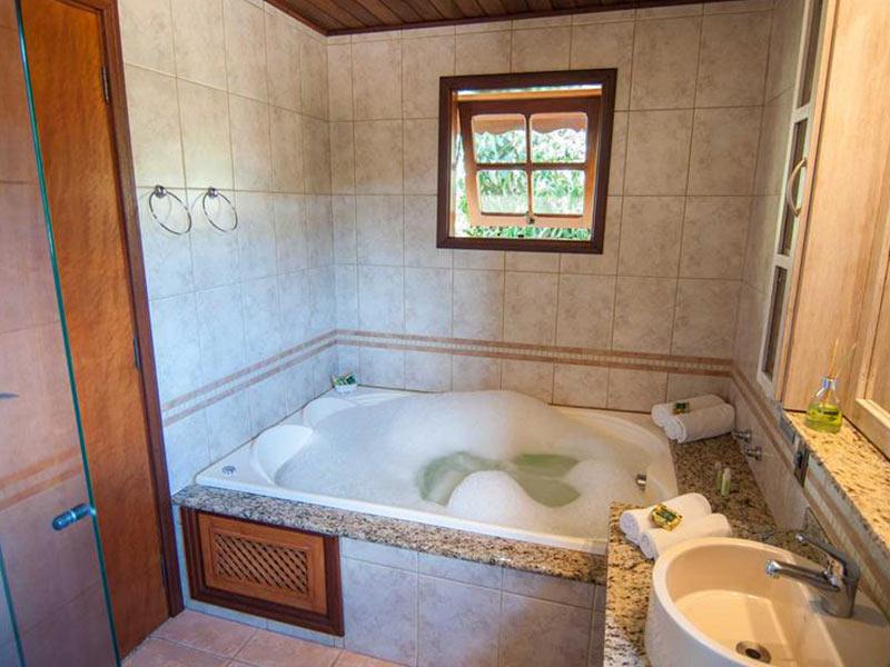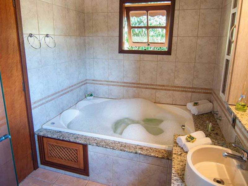 Para seu maior conforto, e atendendo a pedidos, remodelamos nosso chalé de madeira, incluindo uma ampla banheira de hidromassagem para seus momentos relax.