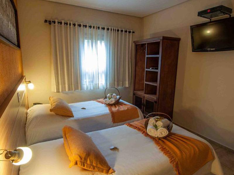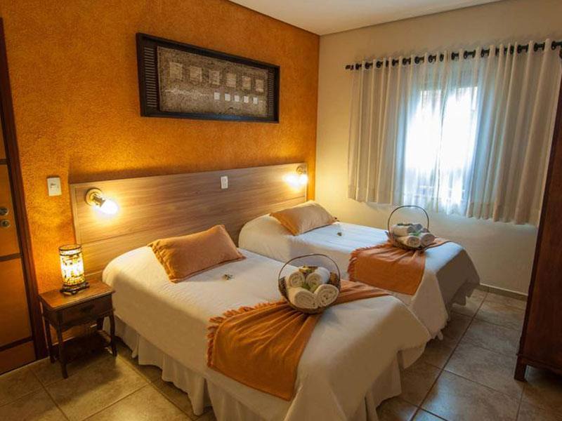 A outra suíte possui duas camas de solteiro (com opção de juntar formando uma cama de casal King Size) e um banheiro sem hidromassagem.